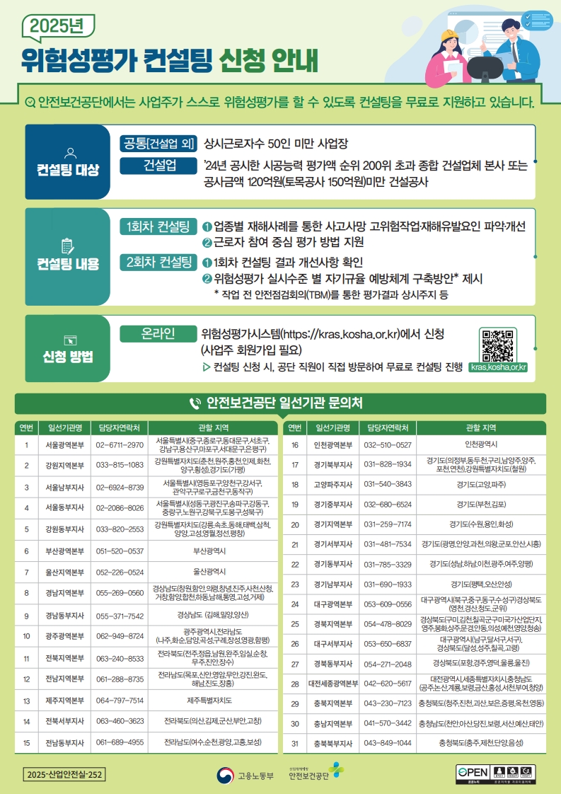 [안전보건공단] 2025년 위험성평가 컨설팅 신청 안내